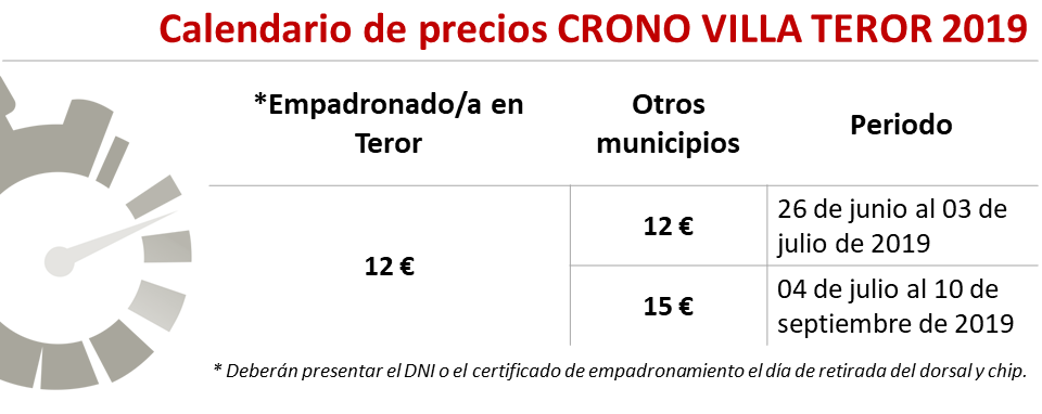 tabla de precios 2019