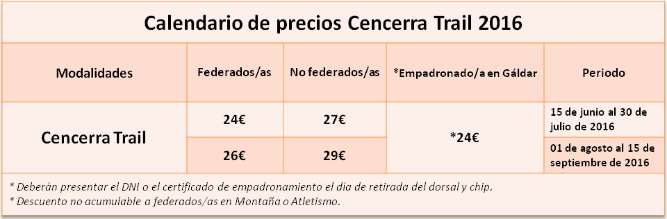 tabla de precios cencerra trail