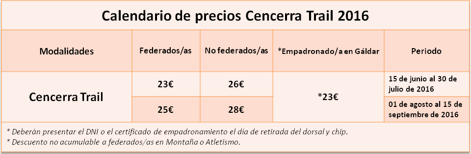 tabla de precios cencerra trail